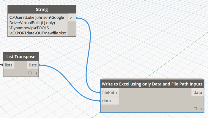 February 8, 2016February 8, 2016 lukesjohnson Write to Excel using only Data and File Path Inputs This is a simple wrapper for the Excel.WriteToFile standard node, that defines some default values and makes it quicker and cleaner to use. The actual definition simply gives some default values to the OOTB Office node, as shown: Share this: Click to share on X (Opens in new window) X Click to share on Facebook (Opens in new window) Facebook Click to share on LinkedIn (Opens in new window) LinkedIn More Click to email a link to a friend (Opens in new window) Email Click to share on Pinterest (Opens in new window) Pinterest Like Loading... Related