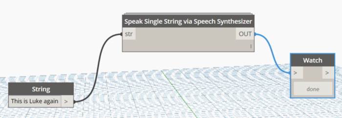March 2, 2016March 2, 2016 lukesjohnson Speak Single String via Speech Synthesizer This node uses system speech synthesizer tool to read a string, and it comes right out your speakers. Could be interesting to add this as audio feedback to various workflows J. Python: from System.Speech.Synthesis import SpeechSynthesizer Share this: Click to share on X (Opens in new window) X Click to share on Facebook (Opens in new window) Facebook Click to share on LinkedIn (Opens in new window) LinkedIn More Click to email a link to a friend (Opens in new window) Email Click to share on Pinterest (Opens in new window) Pinterest Like Loading... Related
