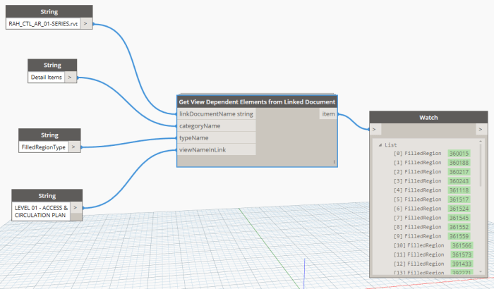 This will get view dependent elements (like Detail Items such as Filled Regions) from a linked document. Inputs: