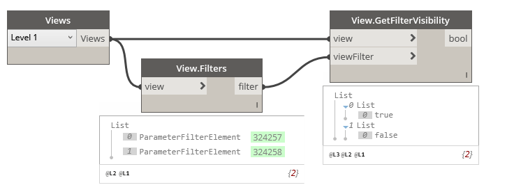 Dynamo Hierarchy: Rhythm>Revit>Elements>View>View.GetFilterVisibility