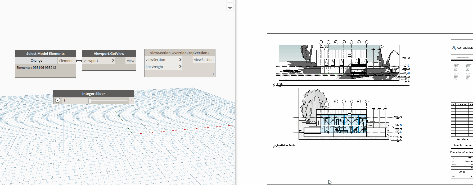 This node will override the crop region of the given section view based on the pen weight provided. This is the faster version that works with interior elevations primarily.