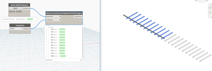 Dynamo Hierarchy: Rhythm>Revit>Elements>Element>Element.GetIntersectingElementsOfCategory