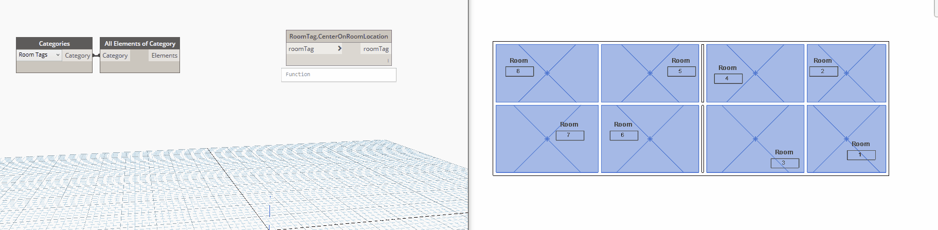 Dynamo Hierarchy: Rhythm>Revit>Elements>RoomTag>RoomTag.CenterOnRoomLocation