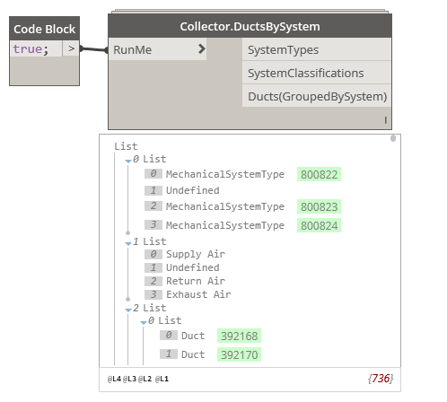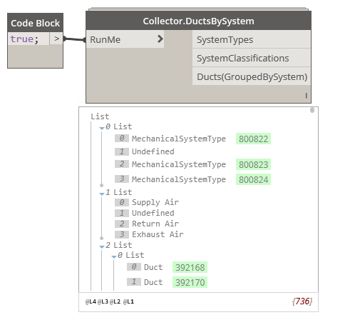 Dynamo Hierarchy: Rhythm>Revit>Collector>Collector.DuctsBySystem