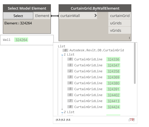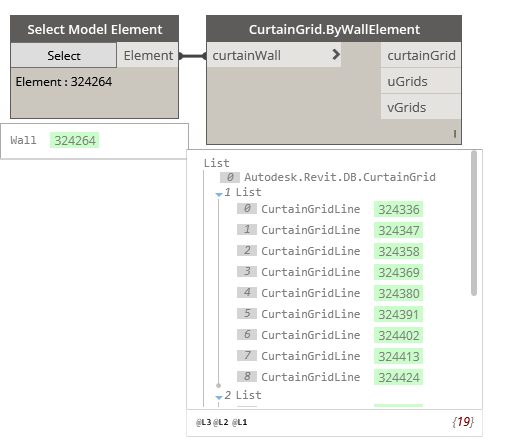 This node will retrieve the curtain grid and U/V Gridlines from the given wall.