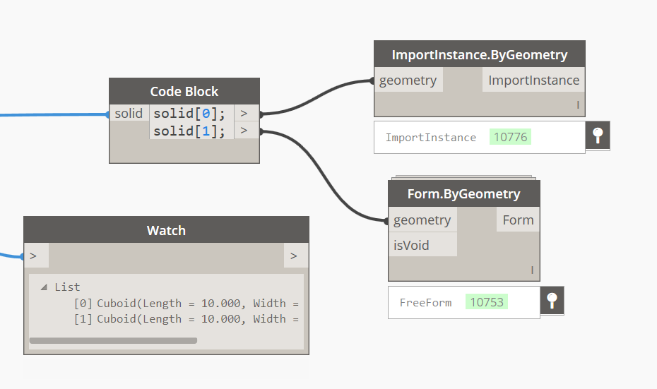 In the end though, the results are pretty much the same. You should end up with native Revit, free form elements, some of which will even display handles which can be used to edit this geometry (usually simpler, rectilinear geometries such as boxes will be fully editable, other times things like lofted geometries might have and end face that is editable).