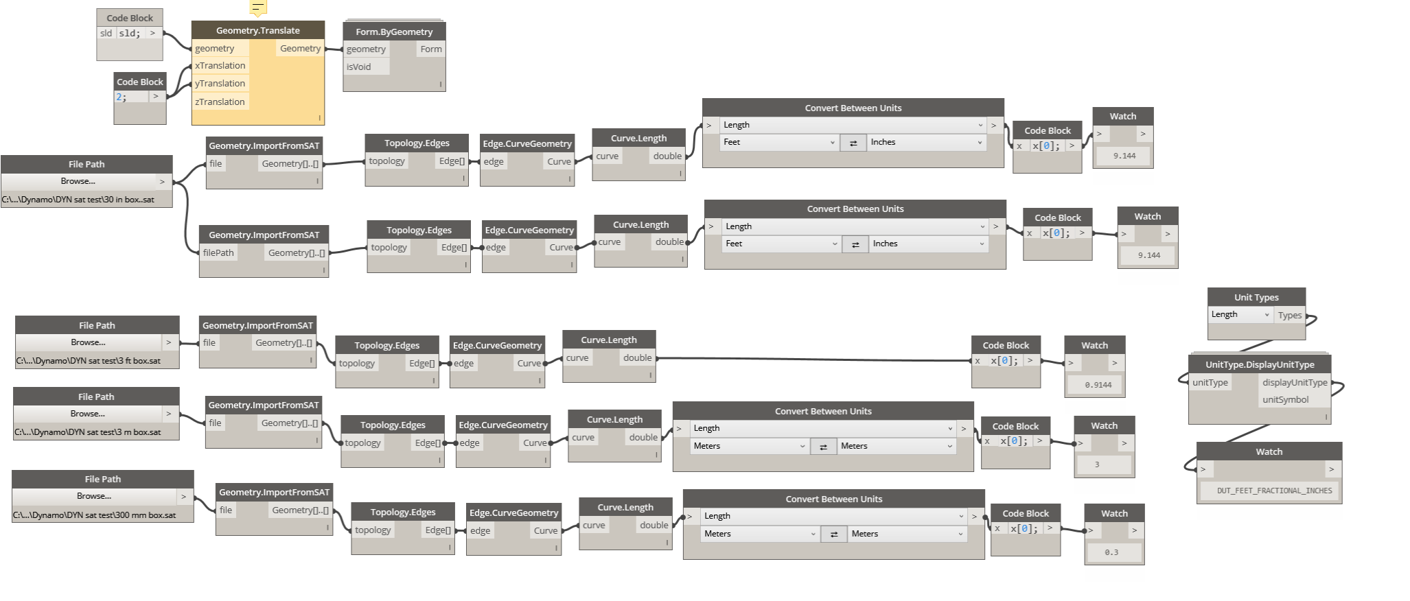 Be aware that there is a scaling issue currently with dynamo’s SAT import nodes where the they only read the geometry as though it were in meters, but this can be easily fixed through some creative scaling before “baking” it into Revit.