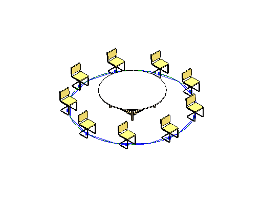 For this part of the lesson we will draw a Model Curve on the shape of a circle to use it as a guide for the distribution path, divide it into equally spaced segments then insert the “Chair” Family at the end point of each segment. We will let the “Table” Family be at the center of the circle.
