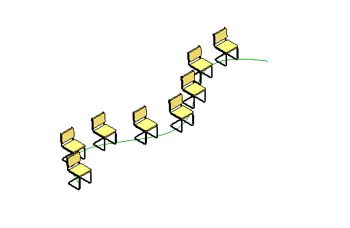 In our example we will use the Family “Chair” and distribute it once along a curved line.