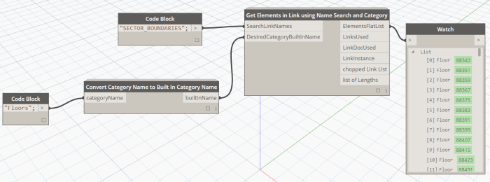 This node will collect objects by doing a wildcard ‘contains’ search on part of the Link Filename, and then using the Built-in Category Name to collect the desired objects. It can be used with the ‘convert…’ node below to allow human readable category name input as string.