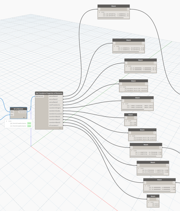 This node takes a list of Revit points (feet, XYZ format), unpacks the Z values, converts to mm, and then filters an input list by a given benchmark value.